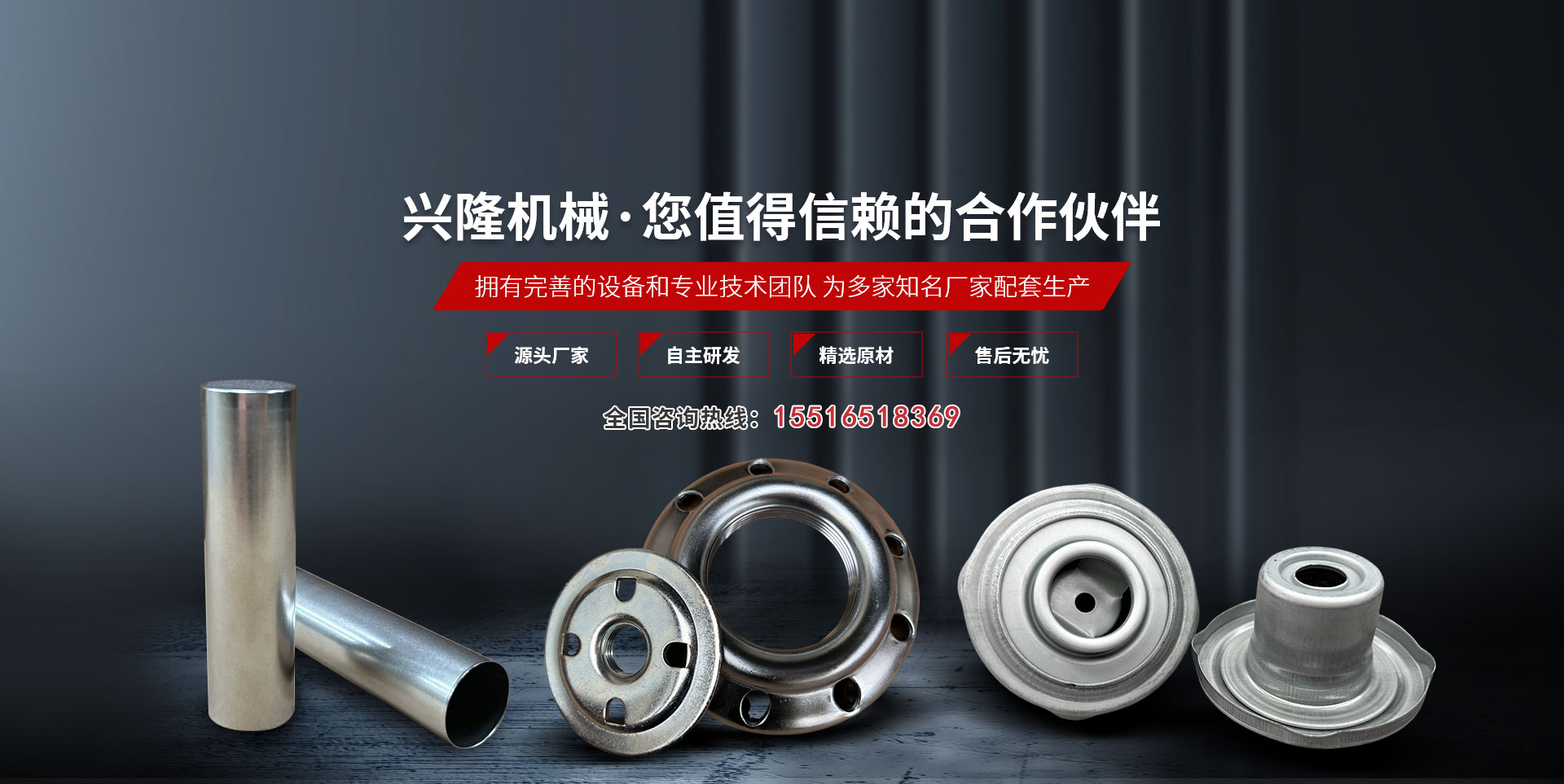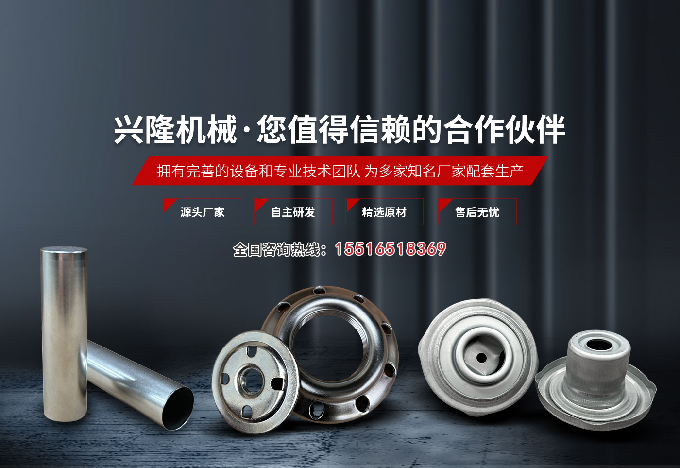 新鄉市興隆機械制造有限公司成立于2004年,是一家專門生產濾清器配件、電池配件、冰箱配件等金屬沖壓件的機加工企業。公司位于新鄉市紅旗區小店鎮,緊鄰京珠高速、107國道,占地23000m2,于2004年通過了質量管理體系認證?! 」粳F有職工170余人,其中技術人員36人,專職檢驗人員6人,擁有多條全自動沖壓生產線、自動落料機、自動清洗涂油機、自動釬焊爐、1-500噸各種型號沖床及配套先進設施設備100余臺套?! 」局饕a品為車用濾清器的法蘭、封圈、端蓋、活門、骨架、支架、殼體等金屬沖壓件、拉伸件;電池鋼殼、蓋帽等電池配件。年產濾清器配件、冰箱配件等1億多件,電池配件2.6億余只。電池鋼殼規格型號:18650、26650、2/3AA、AA、AAA型等系列?! 〗饘贈_壓件、拉伸件主要為中航集團新鄉平原濾清器有限公司、中航集團第116廠、武漢平東濾清器、安徽澳格、定遠億利等廠家配套生產?! ∥夜臼侵泻郊瘓F新鄉平原濾清器有限公司的供應商,占其濾清器配件總量的60%以上,近年來,國內汽車行業快速增長,產銷兩旺,汽車配件銷售形勢較好,我公司產品一直供不應求,前景廣闊。  公司始終堅持質量鑄品牌、誠信贏市場、科技創輝煌的質量方針,加強管理創新和體制創新,不斷引進先進技術及設備,擴大品種數量,提高產品質量,逐步實現機械化和自動化,增強企業核心競爭力。秉承品質與服務的經營理念,竭誠為新老客戶提供產品與服務,大限度滿足廣大客戶的需求。真誠期待與新老客戶合作共贏、攜手發展!  公司地址:新鄉市紅旗區小店鎮西關。金穗大道與京珠高速新鄉站、107國道新鄉站上下路口 交匯處東側、新鄉物流園區大門向東300米路南。由新鄉汽車東站乘60路公交車或新鄉火車站乘126路、196路、43路公交車小店路口下。